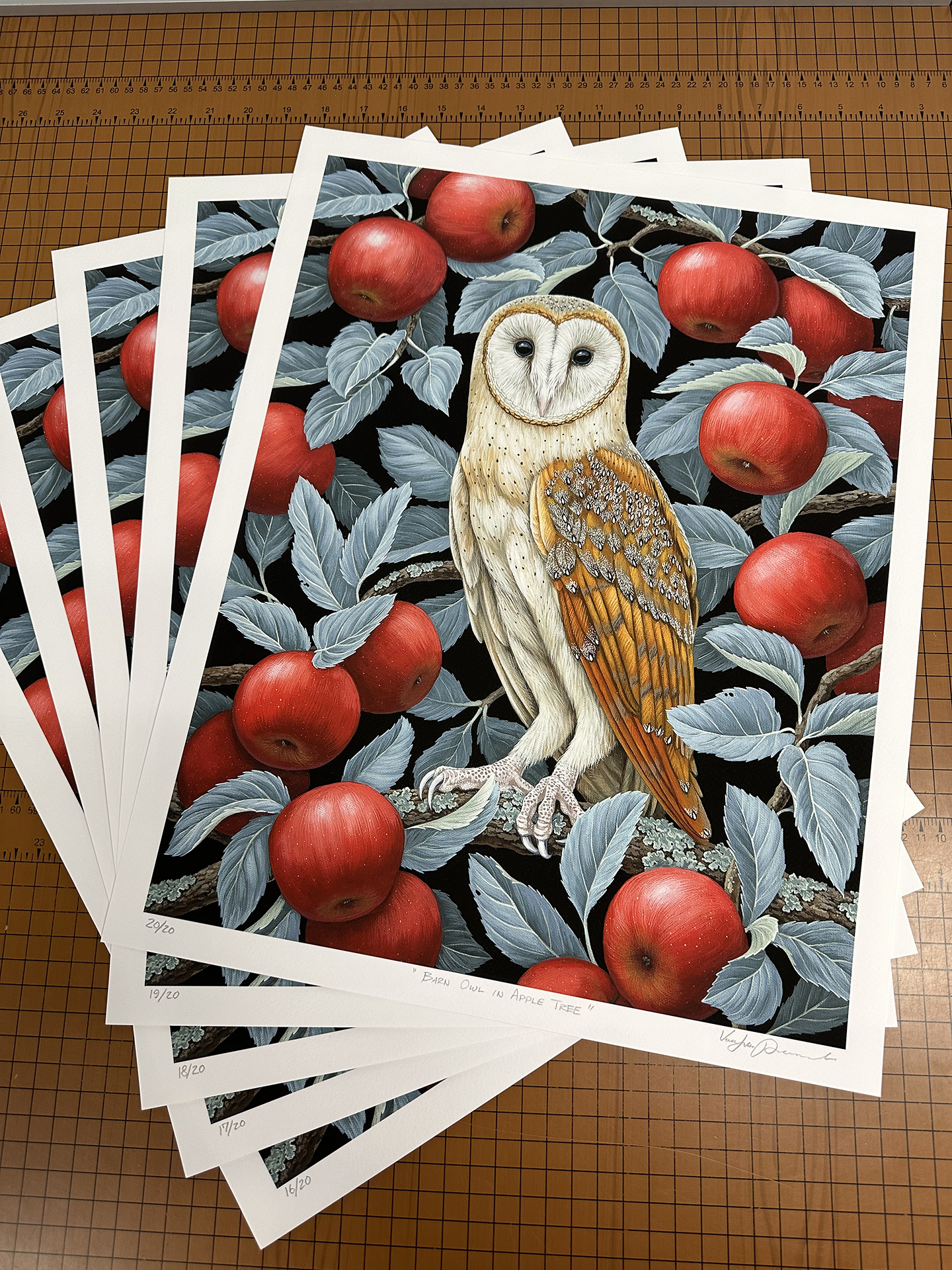 "Barn Owl in Apple Tree" by Vasilisa Romanenko x AEA Prints