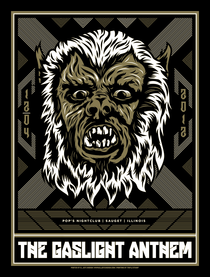 "Gaslight Anthem (Wolf Man)" screen print by Rockets Are Red signed, open edition screen print 18" x 24" $150 USD