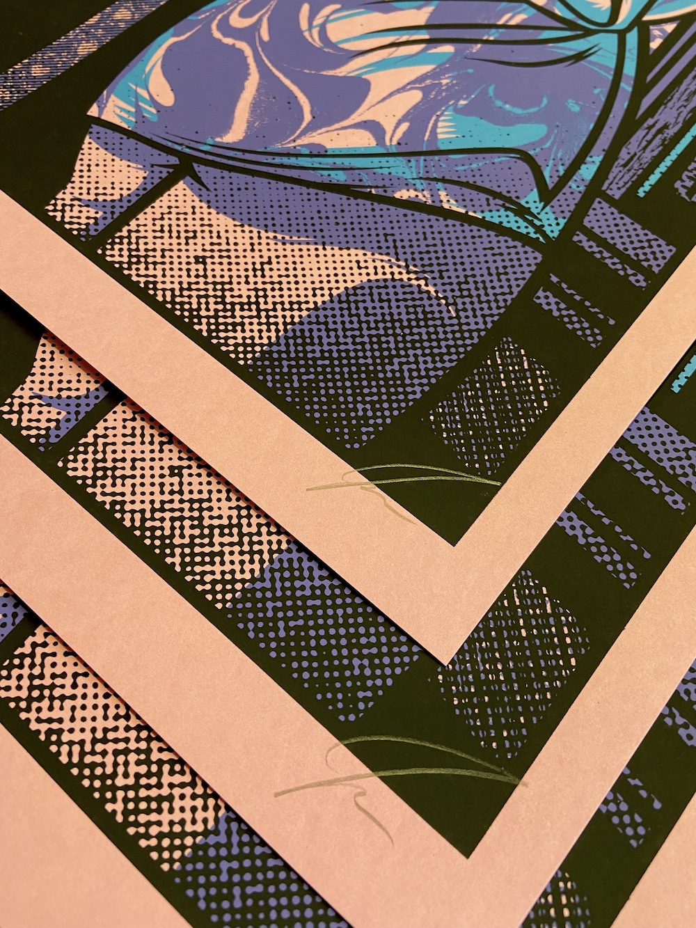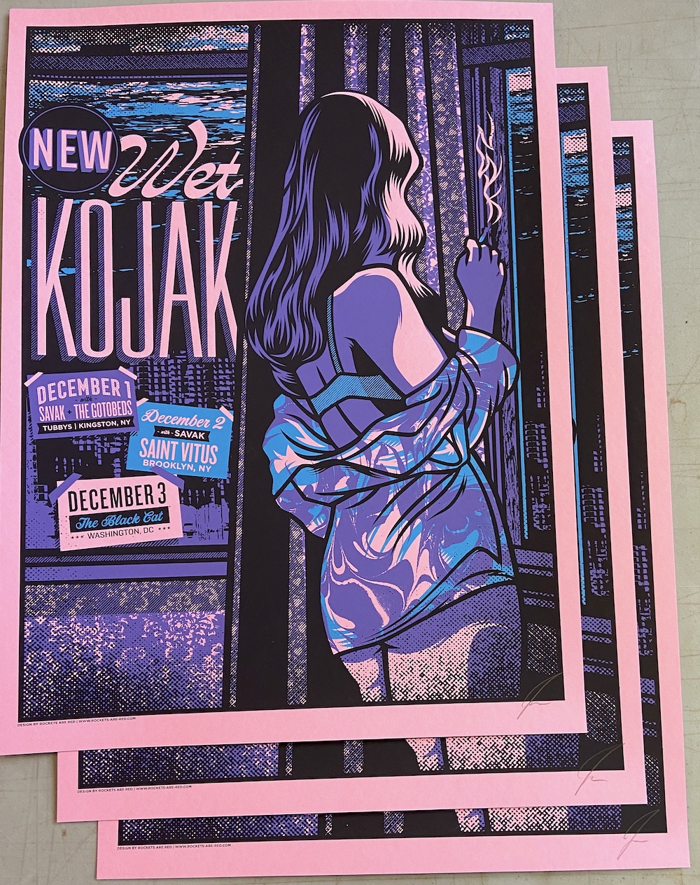 "New Wet Kojak" by Rockets Are Red 3-color screen print, signed open edition, ships flat 18" x 24" $45 USD