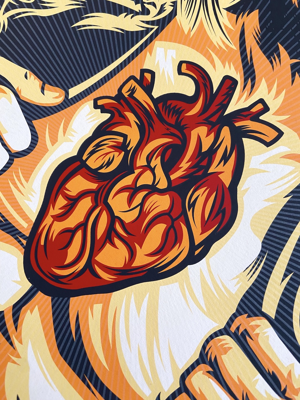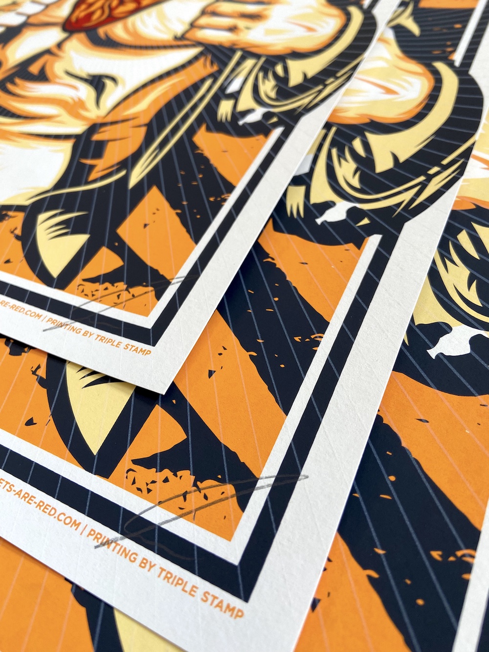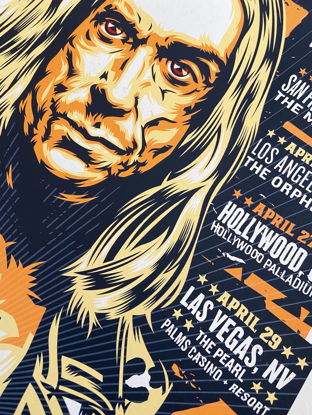 "Iggy Pop West Coast Tour" by Rockets Are Red 5-color screen print with gloss varnish signed, open edition, ships flat 18" x 24" $50 USD