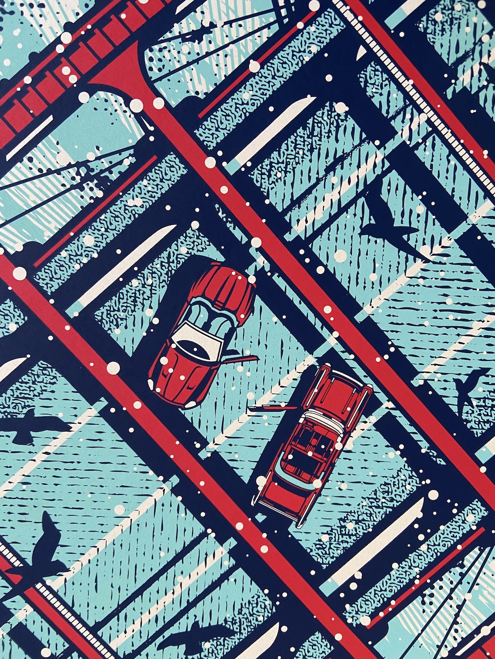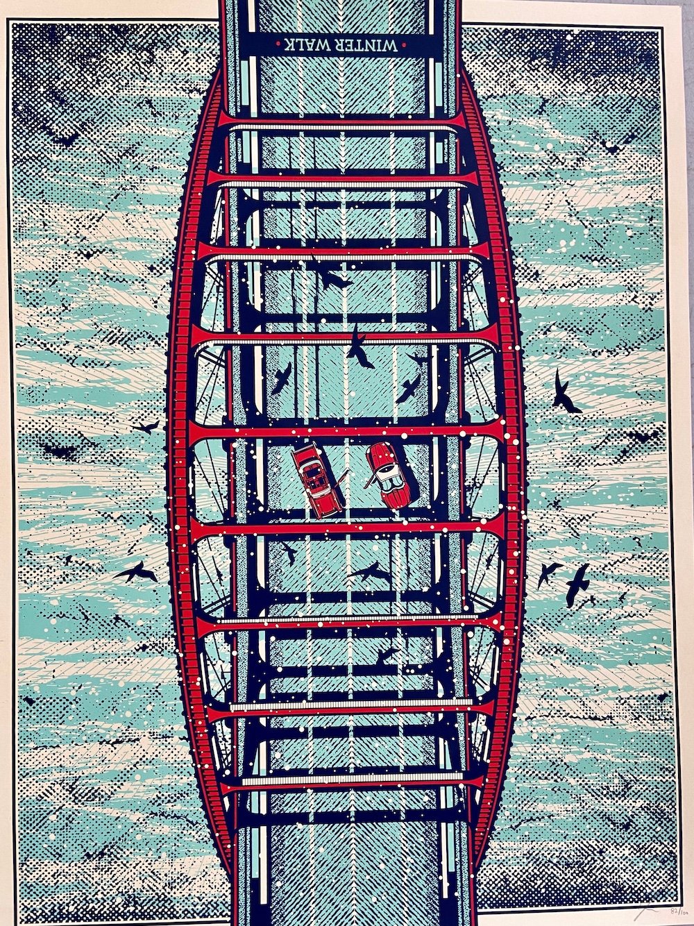 "A Winter's Walk" by Rockets Are Red 3-color screen print, signed & numbered limited edition/100, ships flat 18" x 24" $50 USD