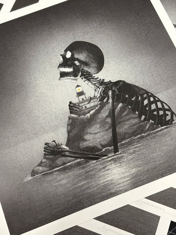 - "Solace" (2025) by Juliet Schreckinger is a print of the artist's original artwork in ink and graphite on Arches paper, drawn in Schreckinger's signature meticulous stippling style.