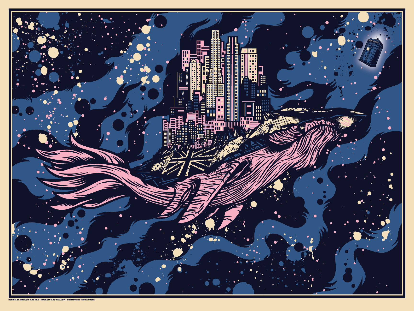"Star Whale" screen print by Rockets Are Red inspired by Dr. Who signed, open edition screen print 18" x 24" $50 USD